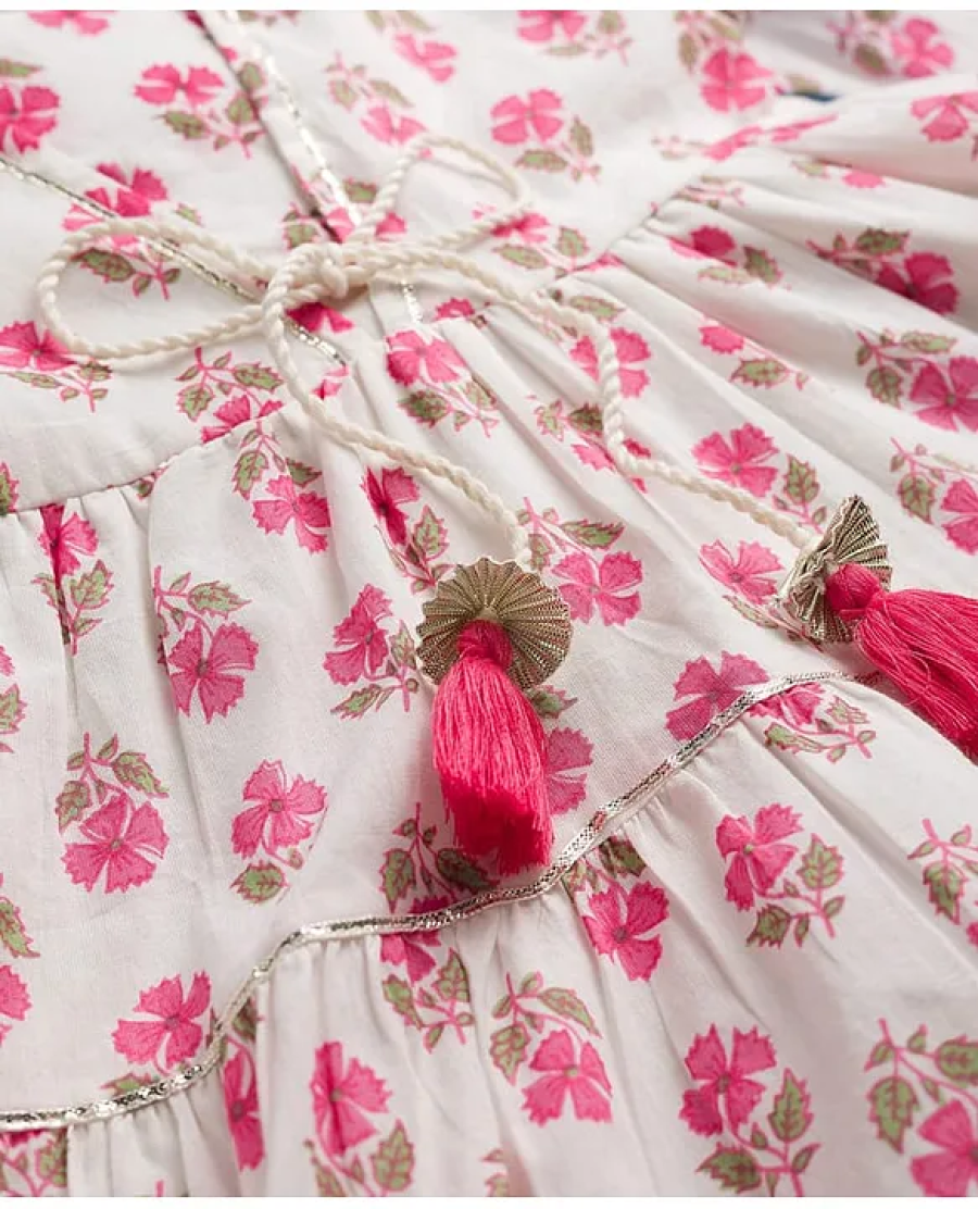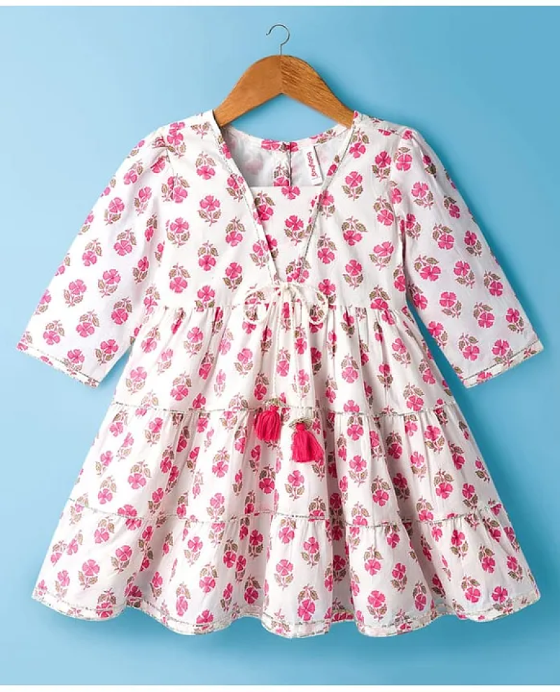 Be the First One to followBabyhug Cotton Woven ¾ Sleeves Floral Printed Ethnic Dress – White